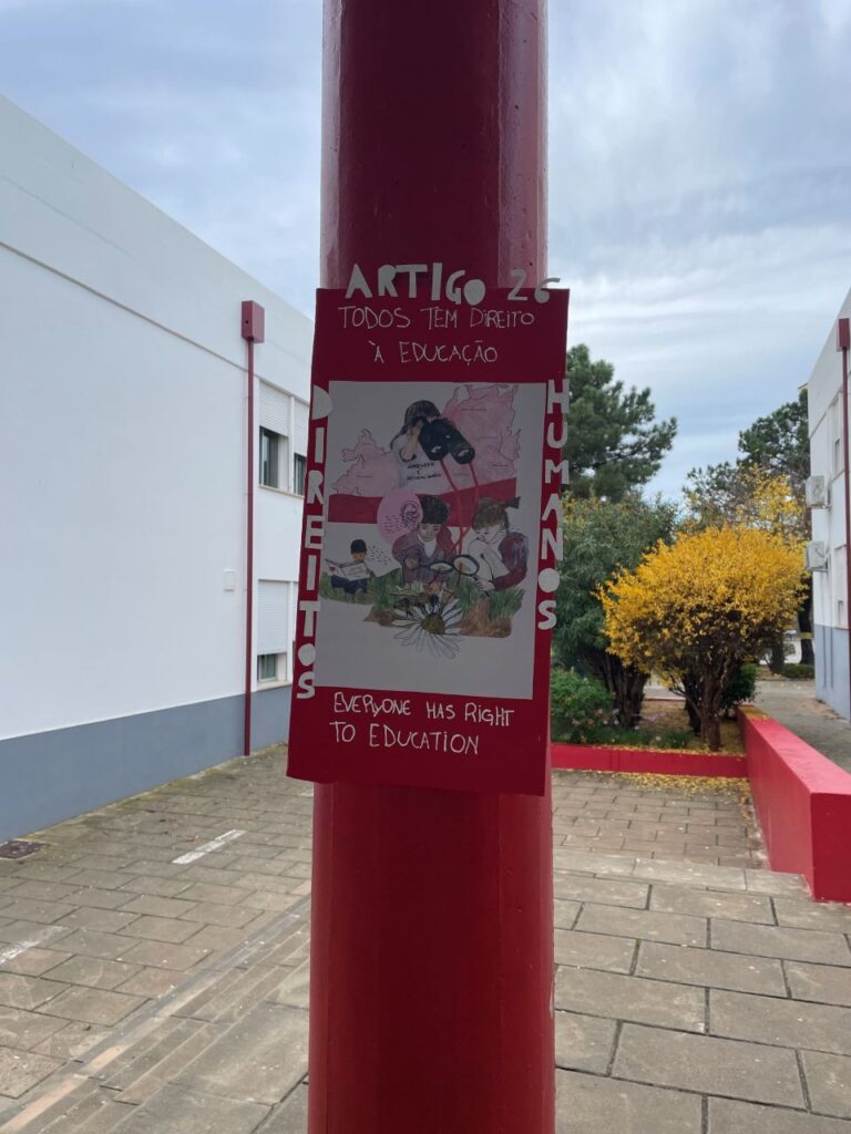 No âmbito das disciplinas de História da Cultura e das Artes e de Inglês, os alunos do 11.º I / I1 realizaram uma exposição de ilustrações inspiradas nos 30 Artigos da Declaração Universal dos Direitos Humanos, assinalando o Dia Internacional dos Direitos Humanos, celebrado a 10 de dezembro. Partindo da exposição disponível na plataforma Direitos Humanos: 70 anos, os alunos replicaram essa mostra com o objetivo de promover a reflexão e reforçar a importância da defesa dos direitos fundamentais no contexto escolar. Numa escola marcada pela multiculturalidade, os artigos são apresentados em várias línguas, refletindo a diversidade da comunidade educativa e sublinhando o caráter universal dos Direitos Humanos: pertencem a todos, em todos os lugares.