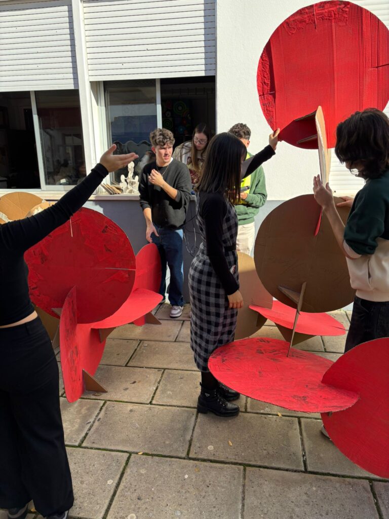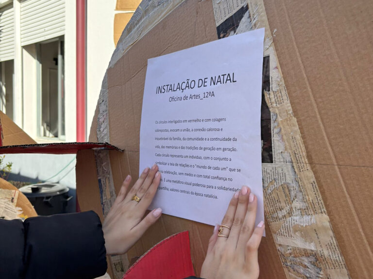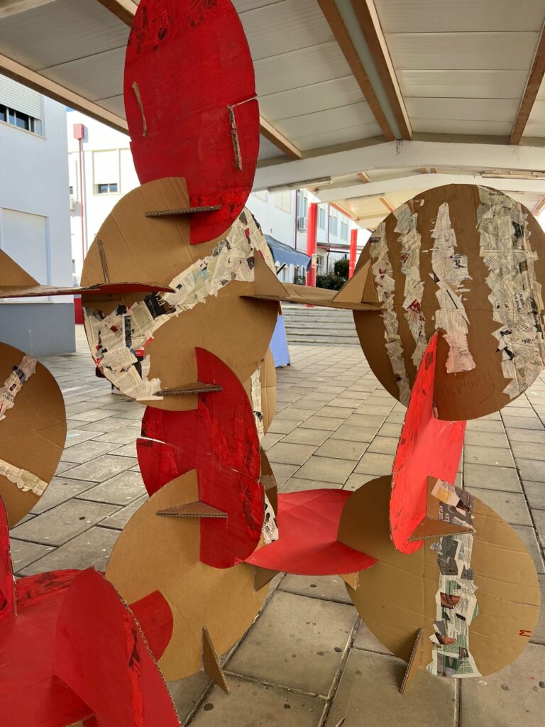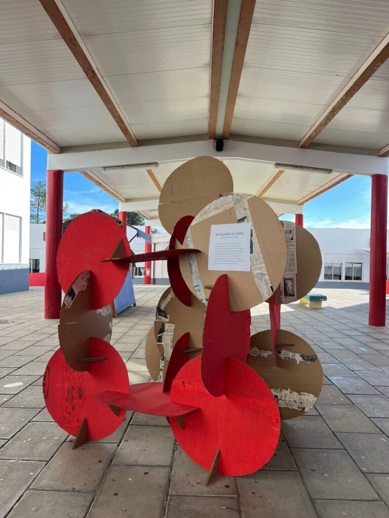 Os alunos do 12º A, na disciplina de Oficina de Artes, realizaram uma Instalação para participarem na celebração do Natal.