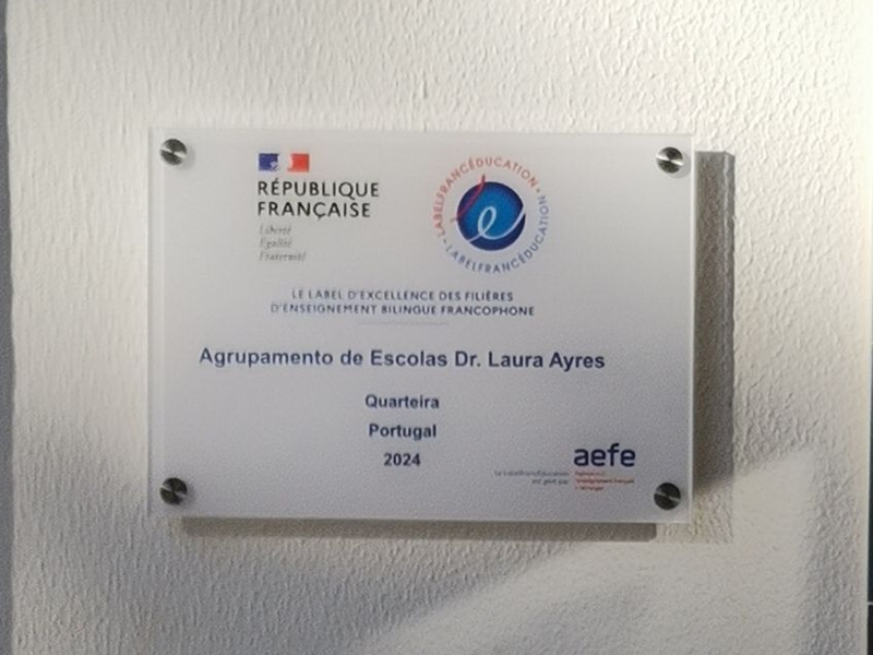 No passado dia 27 de novembro de 2024, a Subdiretora do Agrupamento, professora Lúcia Dias, recebeu na EB2,3 de Quarteira (S. Pedro do Mar), a representante da Embaixada de França em Portugal, Mme. Alicia Lemoine, Assessora para a Cooperação Linguística e Educativa e os Representantes da DGEstE-DSR Algarve, Paulo Feiteira e Helder Rocha para a entrega oficial do selo Label FrancEducation e respetiva placa no âmbito das Secções Europeias de Língua Francesa (SELF), renovando assim a distinção concedida pela primeira vez em 2021.