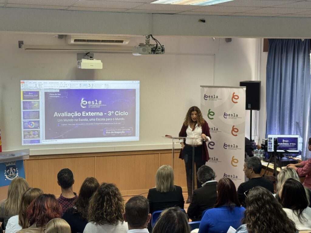 A manhã começou com a palavra da Diretora, Dalila Afonso, que acolheu todos os presentes, lançando o primeiro olhar sobre o caminho percorrido. Seguiu-se a intervenção da Senhora Inspetora, Fernanda Lota, que enquadrou o processo de avaliação externa, clarificando objetivos, metodologias e sentidos — como quem traça, com rigor, as coordenadas de uma viagem.