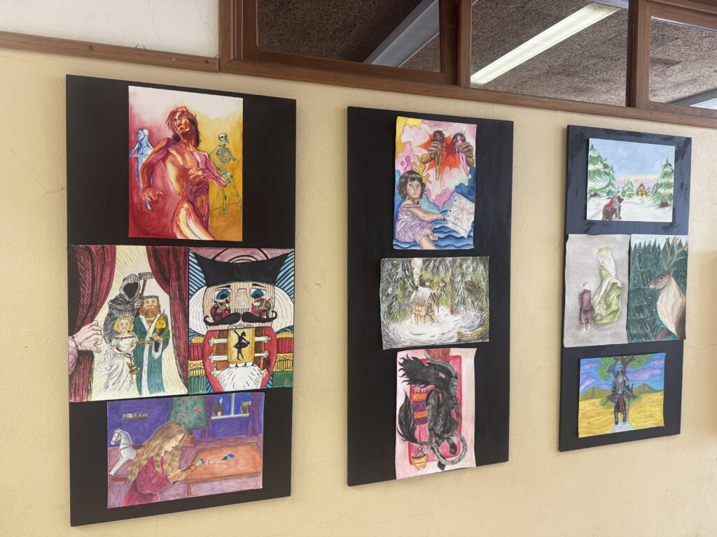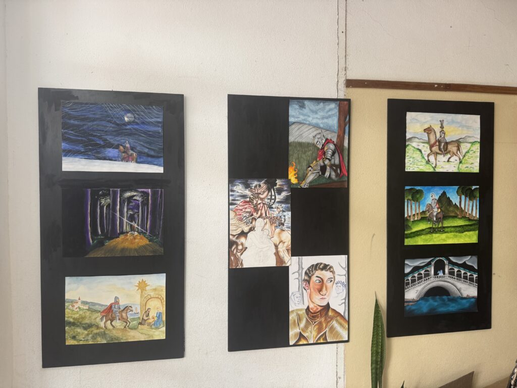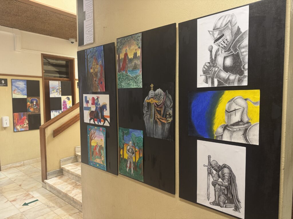 A partir do conto O Cavaleiro da Dinamarca, de Sophia de Mello Breyner Andresen, os alunos de Desenho A dão corpo e imagem a uma viagem feita de caminhos, encontros e esperança. Nesta exposição, o desenho torna-se narrativa, memória e silêncio, acompanhando o Cavaleiro na sua travessia pelo mundo e pelo tempo, até ao regresso ao lar na noite de Natal.
