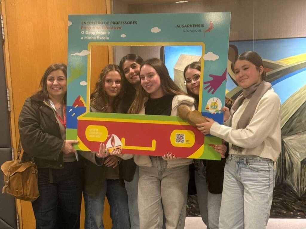 Algarve, 10 de fevereiro de 2026 – O projeto Interescolas “Raízes com História”, promovido pela Escola Secundária Dr.ª Laura Ayres (ESLA), juntamente com a Escola Básica de Paderne e a Escola Básica de São Bartolomeu de Messines, marcou presença no Encontro de Professores do Geoparque Algarvensis, realizado no passado dia 30 de janeiro, no Auditório Municipal de Albufeira. Para nós, este momento foi muito mais do que um evento. Foi o início de um caminho partilhado — entre escolas, território e comunidade.